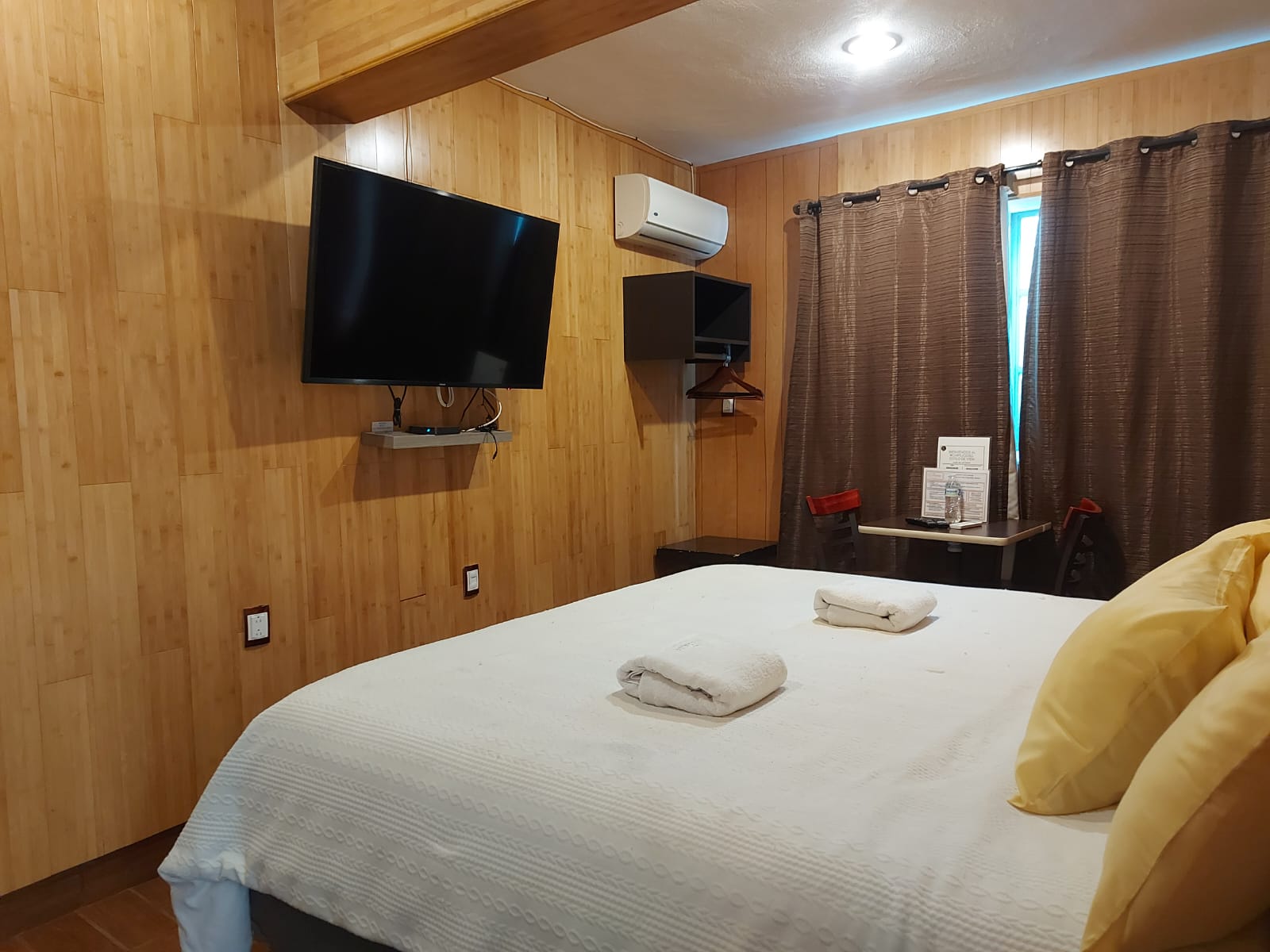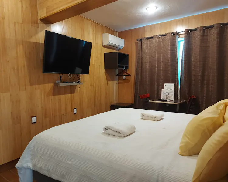 Room Information 1 king size bed. Daily rate in single or double occupancy: From Sunday to Thursday $ 950.00 Weekend, holidays and high season $ 1,700.00 Includes Mexican / American breakfast and taxes. Pool towels, clothes iron and hair dryer, upon request. Services: Smart TV - Air conditioning - Fridge - Electric fireplace - Whirlpool tub. - Terrace - Movies and board games on loan, popcorn is courtesy - WIFI Spa Type Amenities.