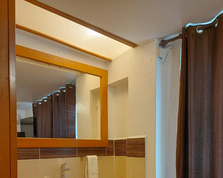Pool towels, clothes iron and hair dryer, upon request. Services: - Smart TV screen Air conditioning refrigerator. Board movies and games on loan, popcorn is courtesy - WIFI - Spa Type Amenities. This room is located on the ground floor.