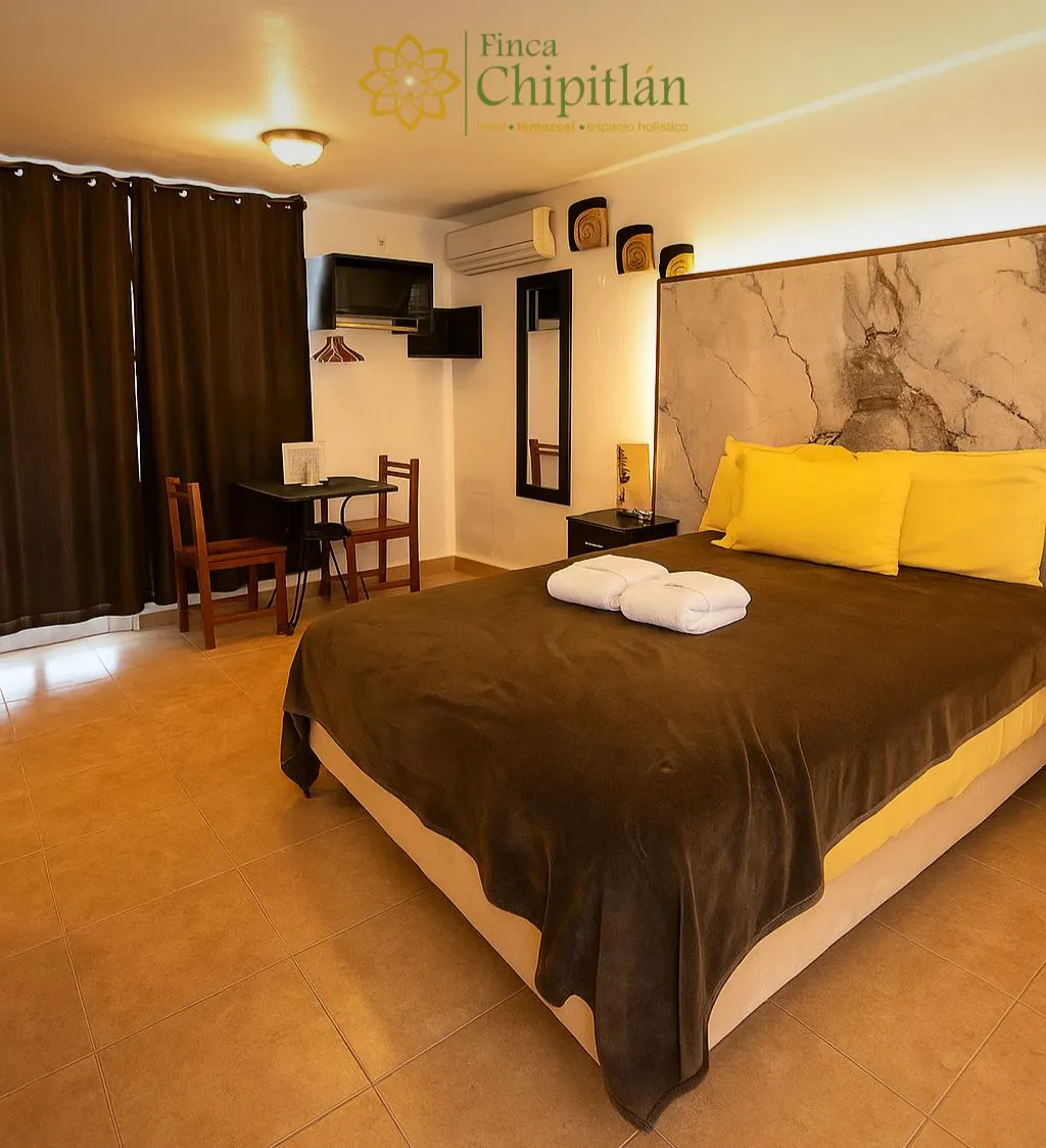 Información de la habitación estándar 1 cama Queen size. Tarifa diaria en ocupación sencilla o doble: De domingo a jueves $1200.00 De fin de semana, días festivos y temporada alta $1,600.00 Incluye desayuno mexicano/americano e impuestos. Toallas de alberca, plancha de ropa y secadora de cabello, a solicitud. Servicios: Wifi. Pantalla. Contamos con Totalplay, así que con tu cuenta de Netflix podrás ver películas y series. - Aire acondicionado, Somos un Hotel Dog friendly