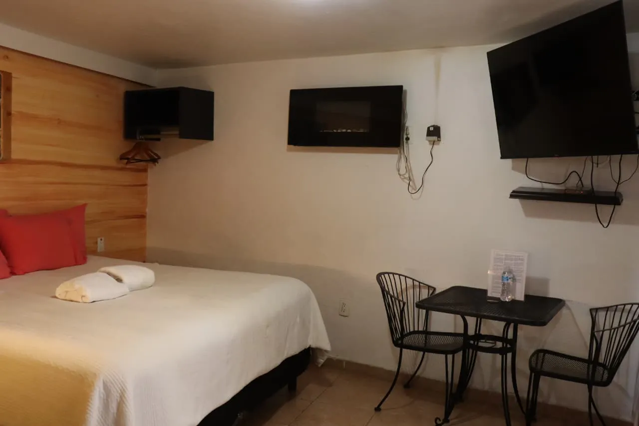 Información de la habitación 1 cama King Size. Tarifa diaria en ocupación sencilla o doble: De domingo a jueves $1200.00 De fin de semana, días festivos y temporada alta $1,950.00 Incluye desayuno mexicano/americano e impuestos. Toallas de alberca, plancha de ropa y secadora de cabello, a solicitud. Servicios: Wifi. Pantalla. Contamos con Totalplay, así que con tu cuenta de Netflix podrás ver películas y series. - Aire acondicionado - Tina de hidromasaje. Refrigerador - Terraza .