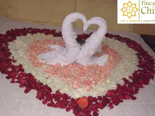 Only suggestions for day 2. Your breakfast can be taken in Cafeteria, in your room, on a terrace or in the garden, if you wish. Have the morning to rest, be in the pool, where at noon, you can request a fresh snack with jicama, cucumber, orange, pineapple, with its chilito and lemon, accompanied by cookies and tortilla chips with a spicy rooster's peak with tuna and Avocado, cheese dips, chicken wings. 2 or 3 hours later, they are invited a tea from the house: warm, hot or cold, they will be given some gowns, to later lead them to their session in our pre-Hispanic Temazcal (it will be a couple session), assisted by a Therapist; then they rest their temazcal, to later take their holistic massage. (or, the therapies that they have previously chosen) The schedule of their therapies, depends on what time they had breakfast, since to take their therapies, they need at least 2 hours before not having taken solid, liquid food itself. It will be a pleasure experience for the senses. At the same time they will free themselves from fatigue and stress. In this Romantic Package, we suggest you take temazcal and massage.